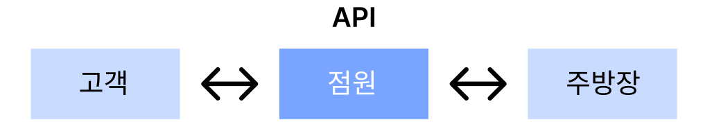 점원은 고객과 주방장 사이에서 상호작용을 도와주는 역할을 하는데 이를 api라고 부름